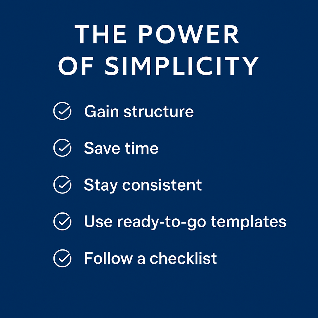 The Power of Simplicity helps you go from stuck to steady progress, fast. This is your clear, step-by-step path out of overwhelm and into focus, confidence and action.